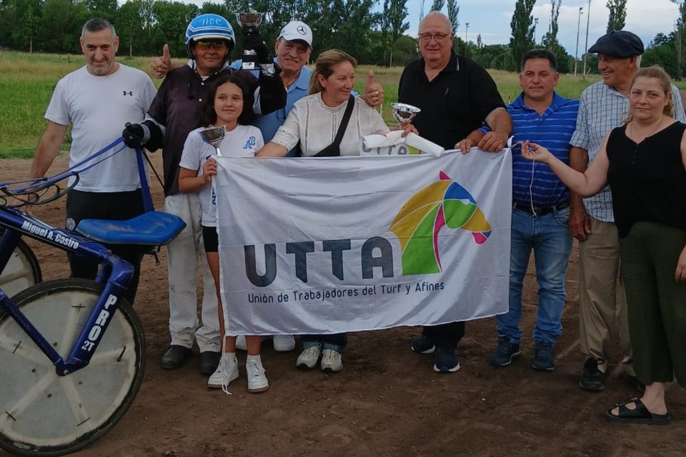 Allí, Guillermo Taborda, Secretario Administrativo y Gremial, dispensó los premios de la UTTA en una ceremonia dentro de la cancha en la que Miguel Ángel Castro, driver y entrenador del vencedor, compartió el momento de alegría junto a su equipo y el propio caballo, con la bandera de nuestro gremio flameando en medio de los abrazos y los gritos de algarabía en la ya por entonces soleada tarde bonaerense.